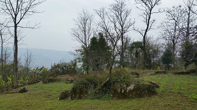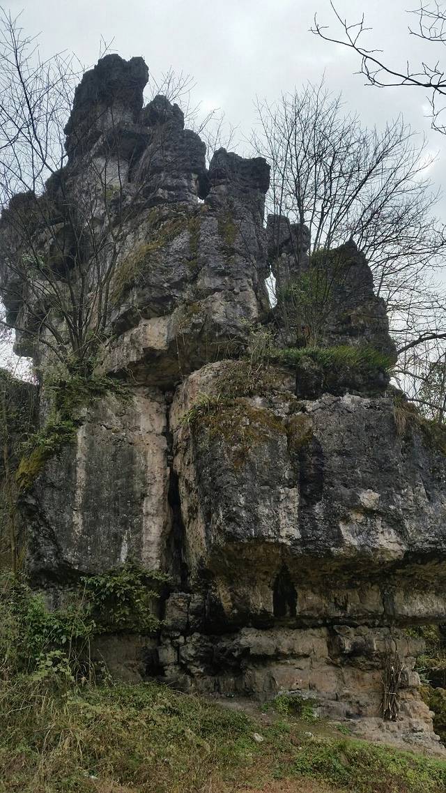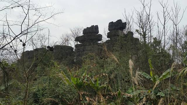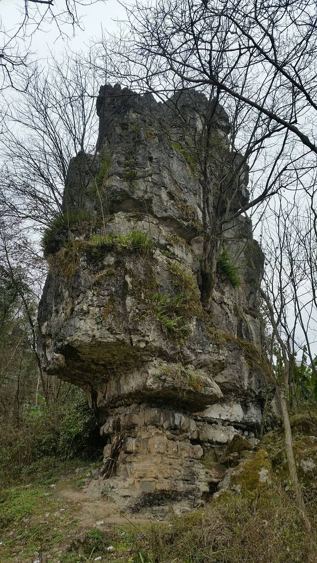 石柱岩的顶部相对比较平坦,由三块石头堆叠而成,可容六七人在其上耍玩。