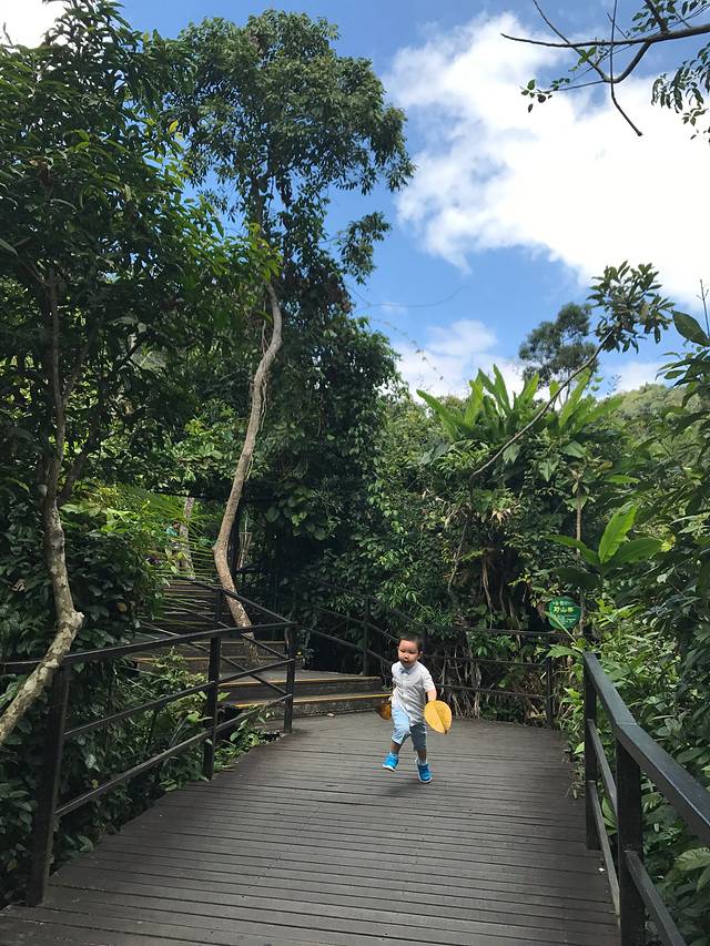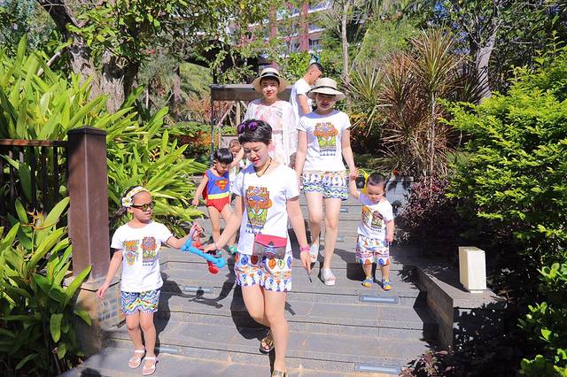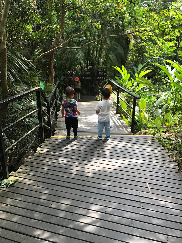 早晨睡到七点半起床,收拾好下楼吃早餐,8:30司机师傅打来电话已经在大堂门口等着了,今天又是两家人一起行动,吃完立马赶去跟师傅汇合,驱车前往呀诺达景区。呀诺达景区位于保亭县,距离市区35公里左右,在去呀诺达景区路上还有一个槟榔谷景区,本来计划先去呀诺达,回程再去槟榔谷转一圈,结果没有想到呀诺达景区真的是太大了,转最小一圈都需要两个半到三个小时。上午10点,到达呀诺达景区,排队进入的时候有两个通道,水路和陆路,水路是踏瀑戏水,陆路就是木栈道。两个都需要足够的体力,因为都需要全程用脚,走走走走走走……水路带小孩是不允许走的,我们只能走陆路了。通过陆路通道,景区给每人发一个景区的讲解器,然后景区的大巴车给送到半山腰的一个观景平台,然后就可以自由活动了。在这个地方有很多景区的导游,不想走重复路多走路的可以考虑请一个导游。导游费用两个小时150元,三个小时200元,我们因为带着孩子不想走冤枉路就请了三个小时的导游,带领我们转了最经典的最小一圈景点。一路上虽然很累,但是雨林里的那些闻所未闻的植物确实让我们所有人大开眼界,一路惊叹。下午2:30,转完一圈,在雨林谷乘车下山,司机师傅已经在等着了,遗憾的是两个小宝宝经过三个小时的徒步后睡着了,槟榔谷计划取消了,直接回市区。下午4点到达酒店,休整一下,一行人乘坐公交到达第一市场,考察了一圈之后在泽香海鲜加工店坐下,老板娘跟随几位男士去买海鲜,妈妈们留守等待,半小时后爸爸们拎着螃蟹,皮皮虾,鲍鱼,基围虾,芒果螺等等还有一些蔬菜一共花了780元,加工费360元,这真的是吃的最饱的一餐!这里建议想吃海鲜的可以来这边转转,就是用餐环境都比较差,但是海鲜算下来比我们北方还是便宜好多,好多朋友都说火车头那里海鲜价格最公道,还有专门的监督人员,但是由于路有点远我们就没去试,感觉第一市场要求不高的话也是不错的。吃完就步行去了旺豪超市买海南特产,然后返回酒店。