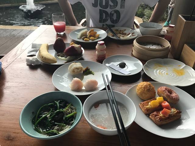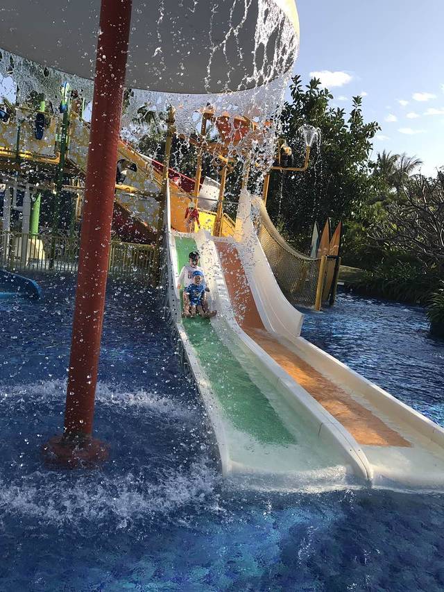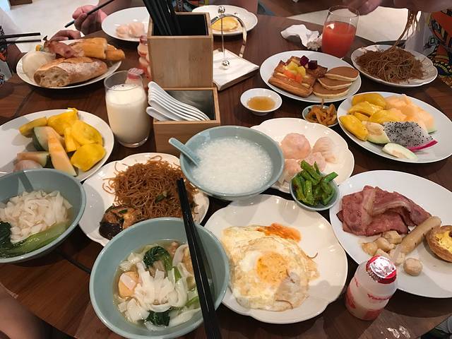 第二天,早晨有一点阴天,睡到八点钟起来洗漱收拾好下楼吃早餐,餐厅管理很有规律,会控制里面用餐人数,没有桌位的时候需要在外面排队等候。我们去的时候队伍还很短,等了一会儿就有服务生引导我们去了室外的一个空桌,桌子旁边是一个小喷泉的水池,环境超级好。我和儿子在桌边坐下等着老公去取食物。这里要说一下同行的两家你们确定是来旅行不是来睡觉的么……竟然睡到九点半还没醒!电话不接微信不回,最后在餐厅往房间打电话才叫醒这一家四口……早餐非常丰盛,尤其是虾饺,那实在的大虾环那味道让人难以忘记。吃过早饭已经上午十点半了,一行人都表示不吃午餐了,然后打车直奔免税店,但是后来证明我们做了一个错误的决定,不应该带着孩子来免税店 !免税店的人实在太多了,像迪奥香奈儿兰蔻这些比较火的店门前都排了长长的队,而小孩子从一进门就嚷着要水枪,根本不配合我们逛街,只能先奔去B区的二楼卖玩具的地方两个孩子一人买了一支枪。然后让爸爸们在外面的广场看着孩子,我们两个妈妈又匆匆返回去逛化妆品,但实在不放心也没有多大心思逛了,匆匆给婆婆买了两个兰蔻小黑瓶,自己买了个MAC口红,同行的丽丽买了个眼霜就结束了。小黑瓶是真的还很划算,大瓶990,买两瓶还能打个九折,比内地专柜便宜了将近一半。下午回到酒店已经四点多,定了点水果,休息了一会儿,又懒得出去了,就接着订外卖,今天订的早,吃完又聊了一会儿才八点多一点,果断回到房间把浴缸放满了水,美美的泡了个泡沫浴。