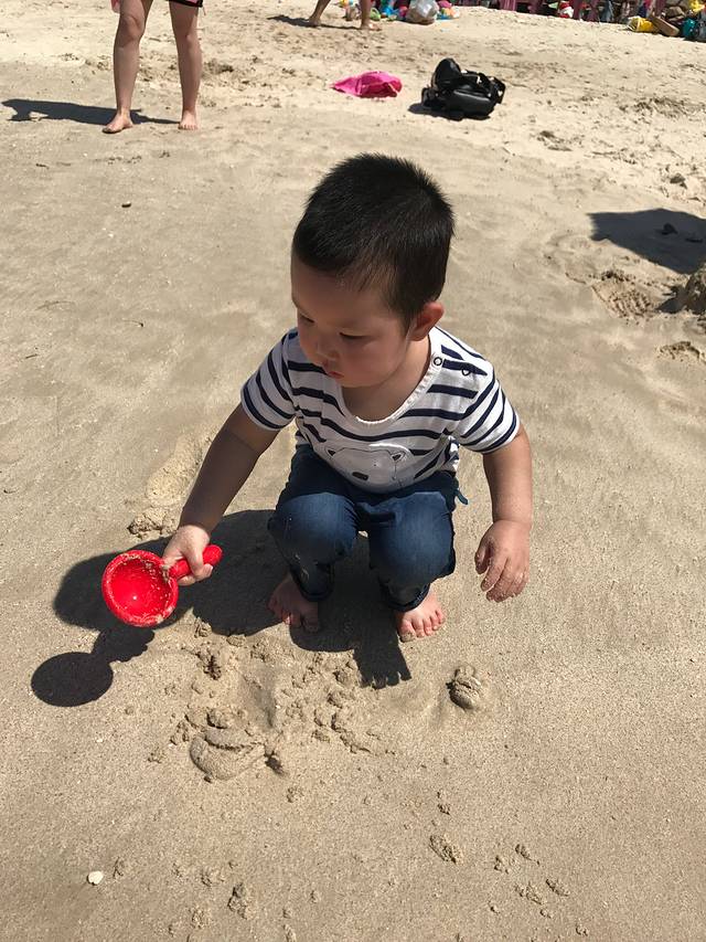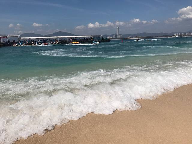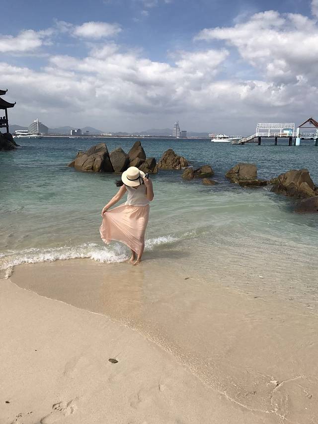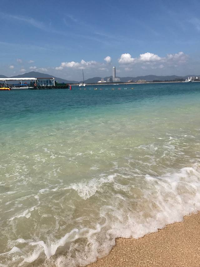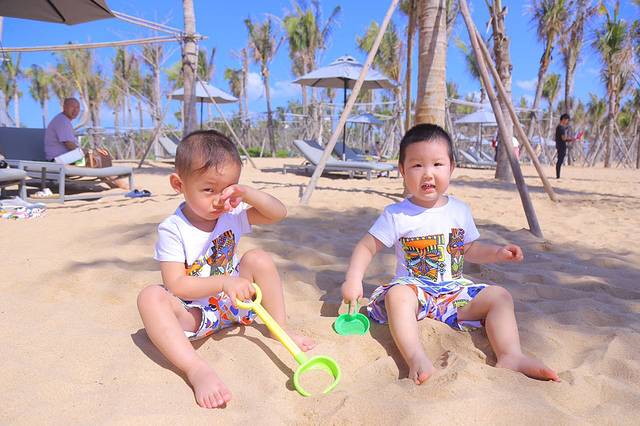前一天晚上跟丽丽约好早起让爸爸们看孩子我们去看日出,早晨六点就醒了,结果微信电话各种不理我,自己出去还有点怕怕,然后我摆弄手机的声音吵醒了老公,老公说,那你不去我去吧……然后就是老公自己潇洒的去看了日出,我等到八点半这个大姐还不理我,果断去敲了房门,结果人家顶着一头鸡窝睡眼迷离的问我太阳出来了吗……好好的早晨就这么过去了。下楼吃过早餐又已经快10点了,立即决定先退房把行李收拾好寄存在酒店,然后拎了酒店提供的免费挖沙的铲子小桶什么的出去疯~~爸爸们要去玩儿水上项目,我们就在沙滩上等待,陪着孩子们去海边用小桶提水堆城堡顺便拍照。将近12点钟,爸爸们终于回来了,大家都有些累,打道回酒店大堂休息一下。然后爸爸们陪着孩子,我跟丽丽同学接着去海边拍拍拍拍拍……2:50乘船下岛,在码头有酒店免费送客人到亚龙湾和市区的大巴车,在市区下车的地点距离酒店只有2公里,由于行李多还是果断打了个车到达市中心的皇冠假日酒店。下午五点,到达酒店,酒店很大,并且住了这次旅行中最高的楼层,25楼,放下行李,在美团团了海螺号海鲜店的888六人套餐,就打车直奔饭店,久违的海鲜我们来咯~结果这顿饭吃的有点小小不愉快,在桌边坐了将近40分钟才上了一盘白灼虾,隔壁桌比我们后来的都上了好几个菜了,一群人本来就饥肠辘辘了,怒气一下就上来了,店家服务态度也很不好,催了好几次原来是把我们的菜上错了,最后老板跟厨房的人吵起来了菜才陆续的上桌了,结果就是这种拉锯战似的吃法几位男士都没有吃饱,老公回到酒店又泡了一桶方便面吃了……在回来的路上用滴滴打车叫了一辆七座商务车,司机师傅是辽宁锦州人,同是北方语系,和唐山又离得很近,最后和师傅定了第二天的去呀诺达景区的包车计划。
