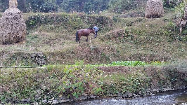 过河后,沿河继续上行