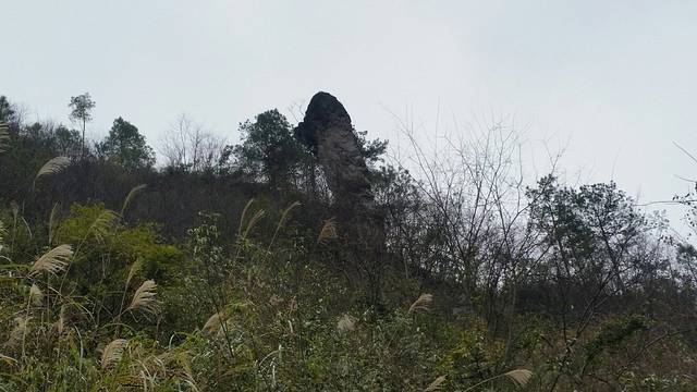 沿小路前行约10米,来到一块缓坡,有乱石,抬头一望:“将军石”!