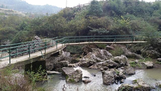 过曲折的人行小桥来到对岸,有县级文物保护碑。