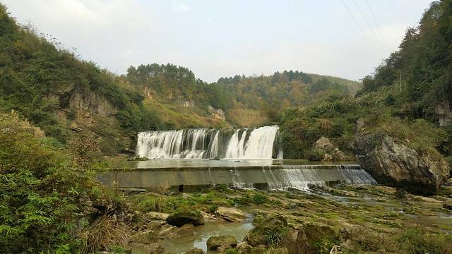 穿洞河瀑布位于瓮安县城北13公里处的瓮安河上,此处河宽50余米,河床落差10余米,河水陡然跌落,形成一宽大的水帘,更奇特的是,水帘后有一横洞,高3至4米,宽2至3米,行人可挑柴草