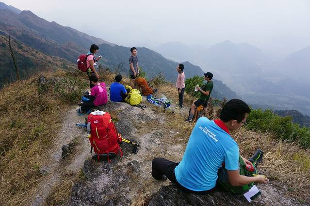 經兩小時的向上登高,約1:28pm小休15分鐘,因為早上高鐵站時的早餐清簡,到這個鐘數,大家都開始有點兒肚餓了.而距離峰頂說遠不遠,說近但又不易.所以小作回氣.