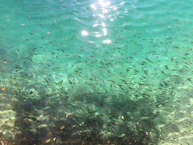 有块大泳池,水非常清澈,人山人海,赶紧来几张