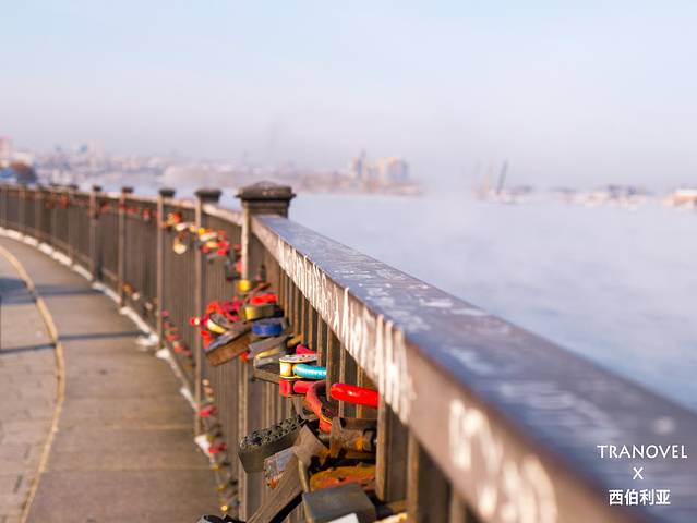 河边的栏杆上挂满心形的、刻着恋人名字的锁,以祈愿永恒的爱情。