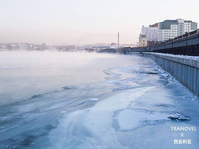 广场后面就是安加拉河畔了,官方攻略上说广场背后的这一段安加拉河是整个伊尔库茨克排名第一的景点,风光极好,教堂林立。我们认为最美的时候是早晨9点左右,太阳还没完全出来,河边水雾缭绕,仿似仙境!河对岸的房屋在雾气中时隐时现,如同海市蜃楼。