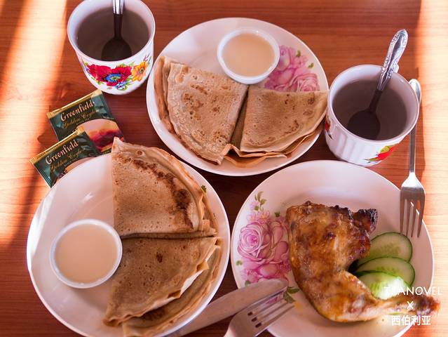 之前在珲春的时候就尝过俄餐的味道,其实在远东地区和西伯利亚地区,俄餐的味道是有中餐的影子的。比如他们这的包子,大煎饺,吃起来都有种隐约的熟悉感。