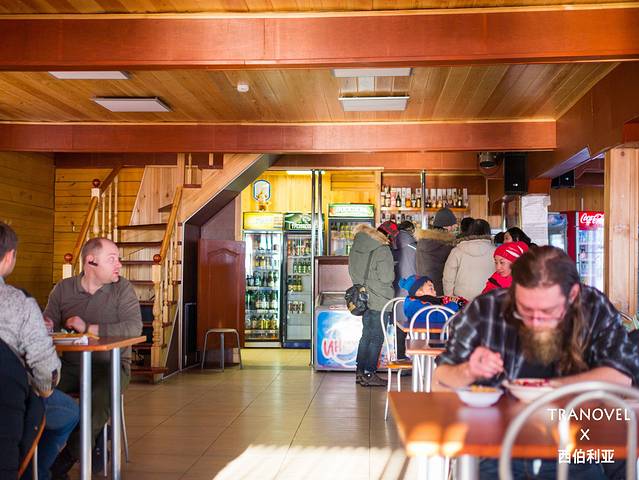在这吃饭分为主食、主菜、汤、饮品,主食一般是面包、包子、饺子、大煎饺等,主菜就是一些肉菜、沙拉等,汤比较著名的有红菜汤,中国客人的最爱,伊尔库茨克上有一些饭店就会用中文打出“这有红菜汤”的标志。俄罗斯的汤不像中国那样,这边的汤严格意义来说更像一道主菜或者主食,汤里会视品种不同而放许多菜和肉。一般这样有一顿饭齐全一点吃下来就是600卢布左右,在奥尔洪岛上会更贵一些。