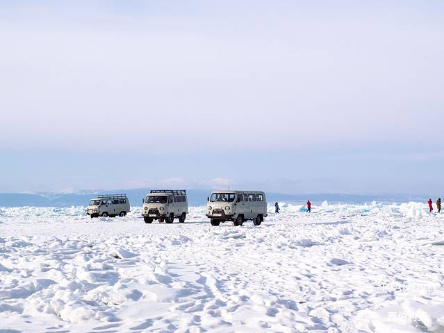 冬天的小巴车不会开到湖上,要么每人交350卢布坐气垫船,要么步行,我们选择了步行,感觉选择步行的人比坐船的多~