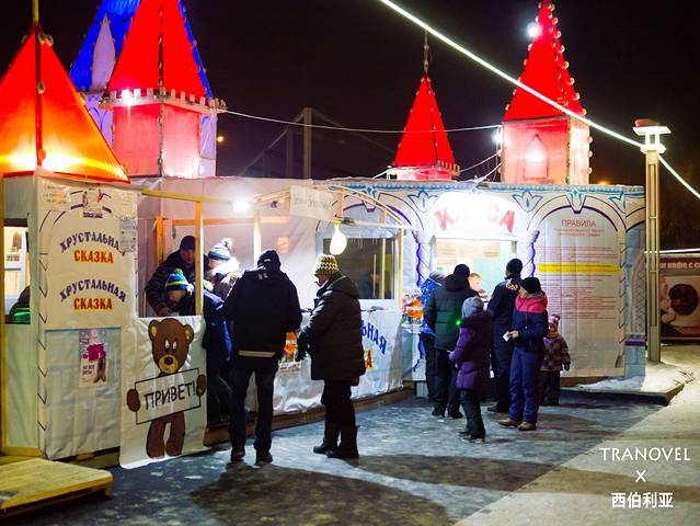 1.冰滑梯,这是几乎可以算是伊尔库茨克随处可见的项目了吧,从胡日尔村的学校旁就看到一座,卡尔马克思大街和列宁大街的交叉路口胖有一座完全是冰雕刻而成的冰滑梯,在这还遇到了多滑道一体的,看上去就刺激。每一次见到冰滑梯总能看到孩子们一脸幸福的表情,再年轻十岁,我也上去感受感受(要是没人,现在我也上去试试)。门票价格400卢布,没有儿童票。