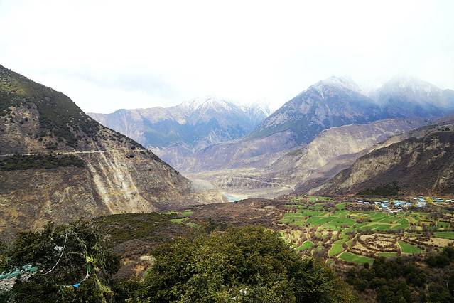 因为是大峡谷游程的最后一站,焦燥的急于收工的大巴车司机破例没限定停留的时间,貌似宽容的对我身后拿着一堆专业照像器材的秃顶中年男子说,你们去拍吧,差不多了就回来。接着对我们嚷,“右边有洗手间,村头可以看南伽巴瓦,村里不能去,村民的藏獒是散养的”