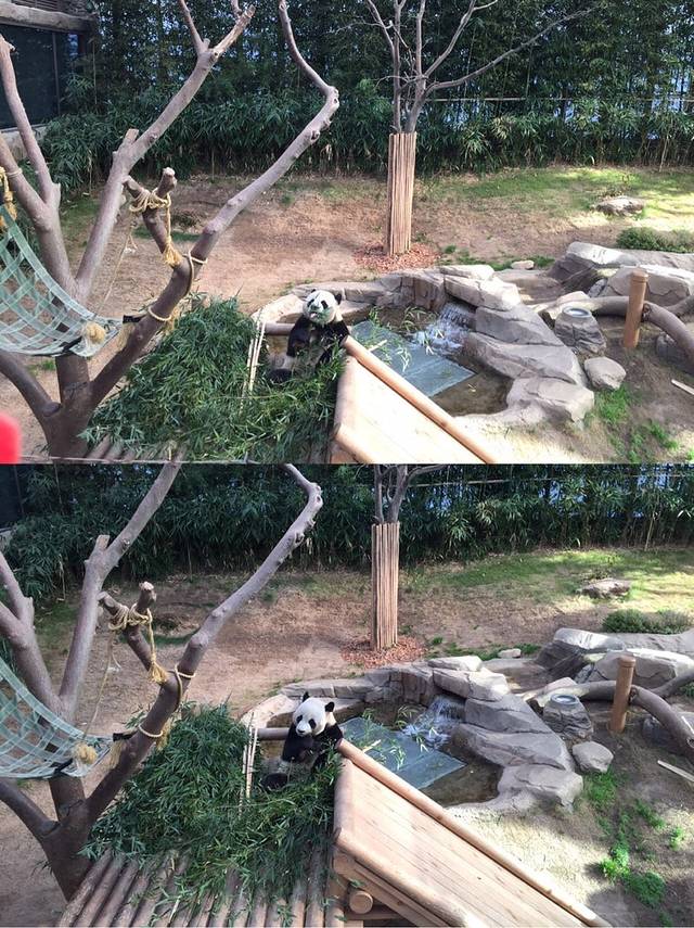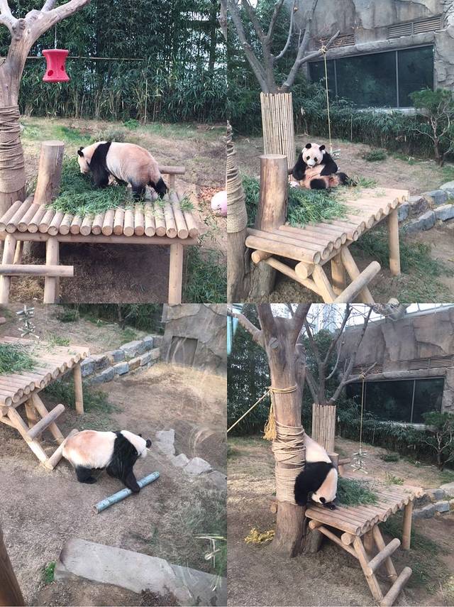 为啥我前文强调了干净二字,这头公熊猫是用脏屁股面世的,我用了强有力的四川方言唤了它的名讳:“圆欣~欣儿啊~韩国竹子吃了拉肚子了没?看看你老乡我啊!”我以为它患了孤独症,后来发现他只是跳累了,歇会。后来它完成了撒欢打滚,玩竹子,爬树,跑圈圈,挠屁屁一系列展现个性的动作,无眼看啊,简直是。