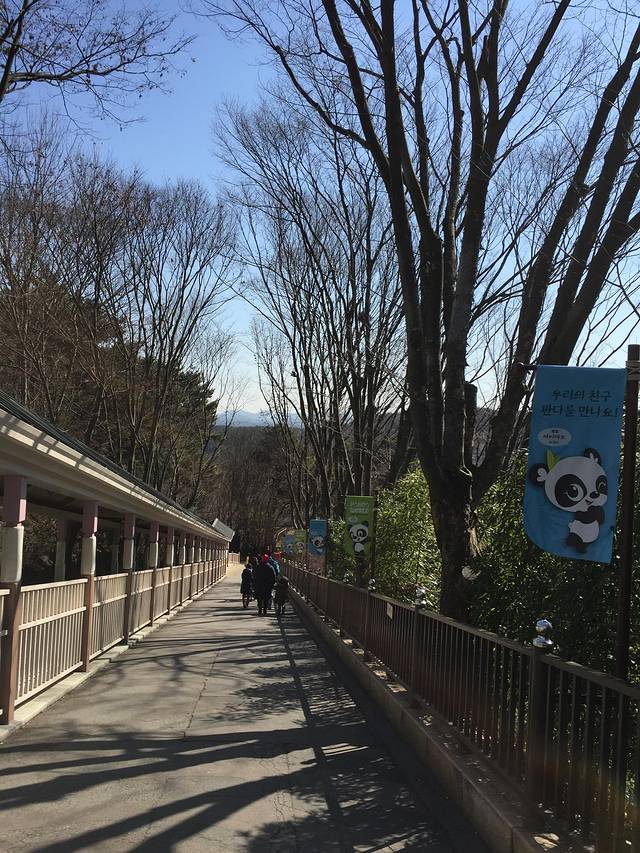 在line friends的对面有一条小道就是通往野生动物世界的路,往下走的途中望向右手边就是有名的熊猫乐园,但是我们当时的路线是最后返回时问候熊猫宝宝,所以就先跟着我们往前走去看看其他宝宝吧,重量级嘉宾总要留在最后!哈哈哈哈~~