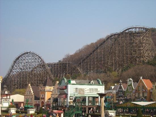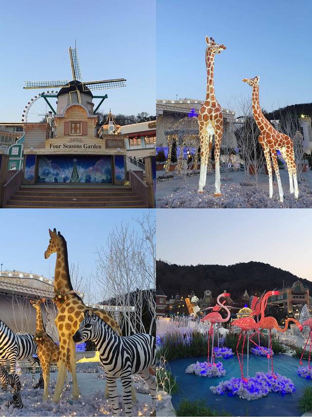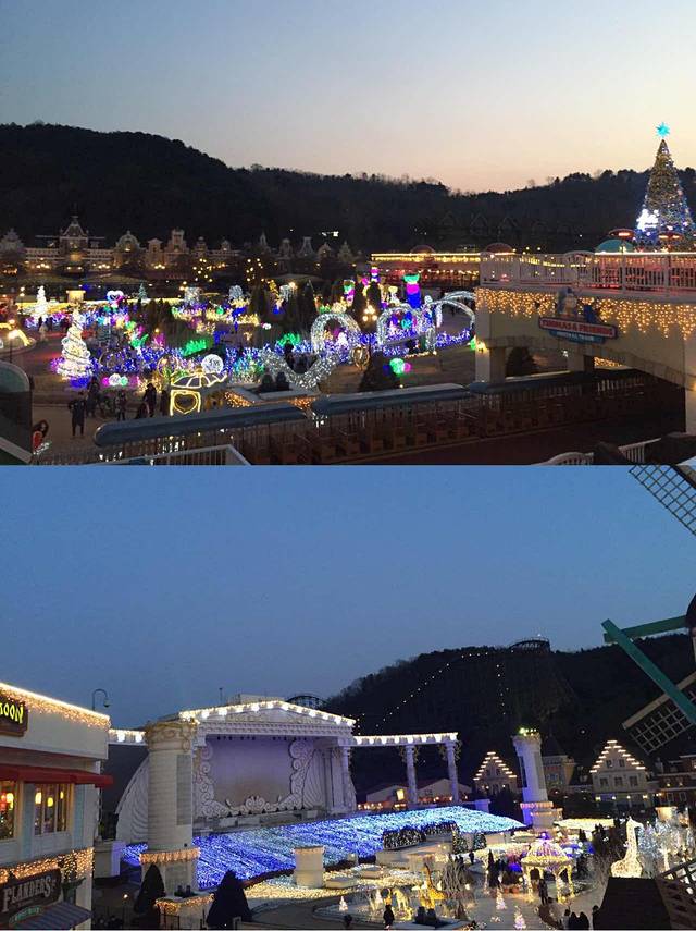 到了晚上大家是不是觉得漏了点什么??是的,没错,就是爱宝乐园地标性游乐设施-木质过山车!! 我在下面看看就好了,哈哈哈哈哈哈哈哈 没敢上去。。。。 还记得有一期running man 是在这上面拍的呢,胆大的宝宝们真的有必要去试试!!这次我们去的正好,木质过山车经过冬季检修后,18号正好重新开放噢!(介于我胆小,我退缩。我可能就适合去逛逛什么四季庭院吧,哈哈哈哈,我比较适合欣赏美景LOL)