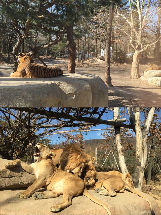 进入老虎区,立刻看见巨石上慵懒地躺着几只巨兽,午休时间,阳光下,他们可真会挑地儿啊!我都觉着它们特舒服,天天好吃好喝伺候着,当大爷的样子还有万众粉丝,拍照尖叫。像个明星一样~