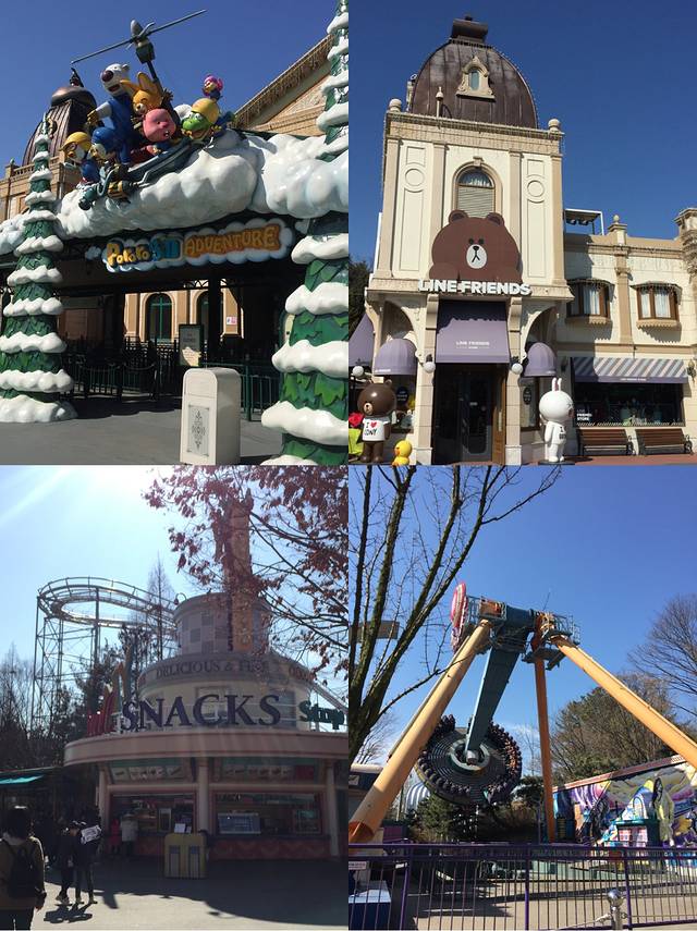 魔法树背面是宽敞的圣诞树道,Bling Bling Bling~道路两旁分别是line friends旗舰店和儿童影院,大摆锤。左边是小食棚和大餐厅,大冬天真的很需要进去吹吹暖气歇歇,看下面怎么走。我们进去了。