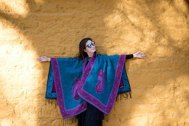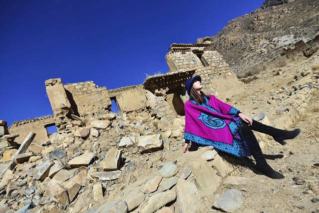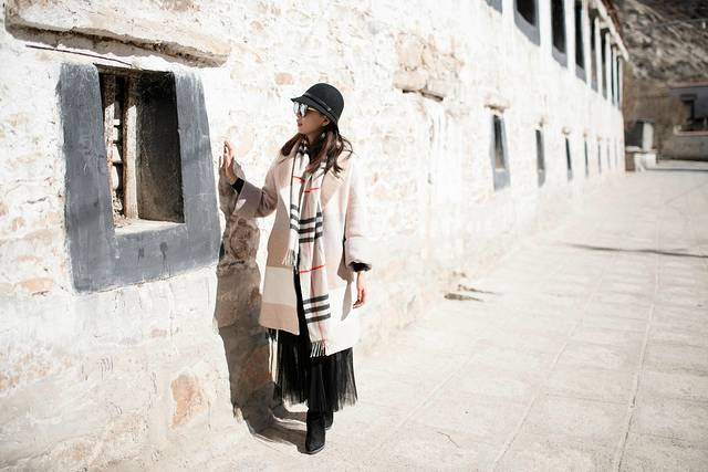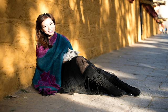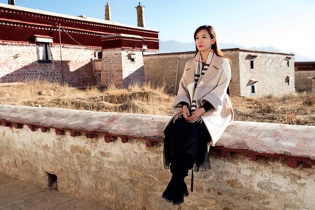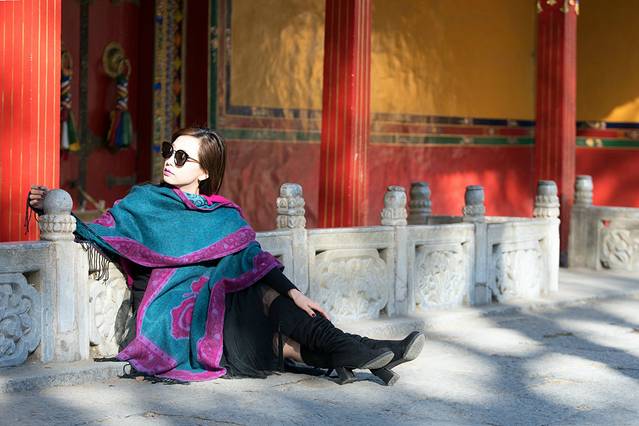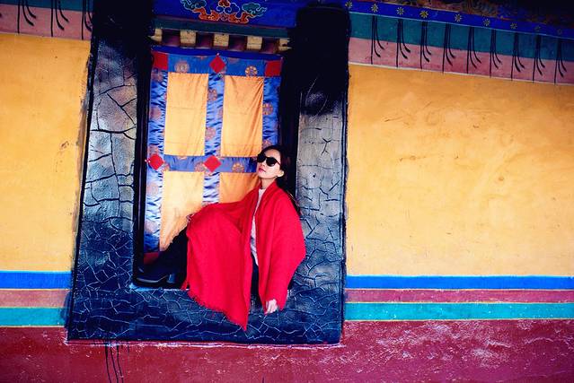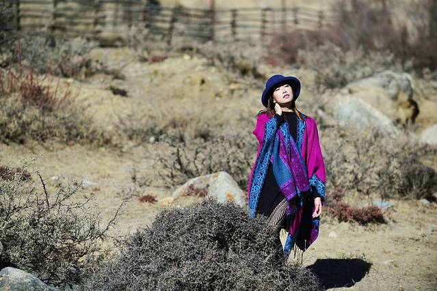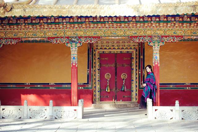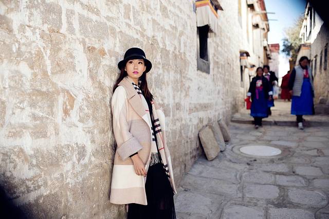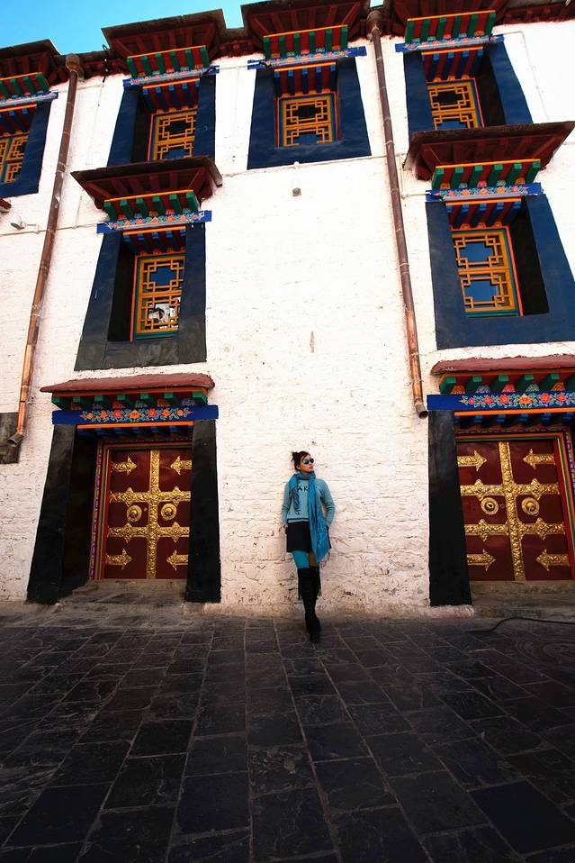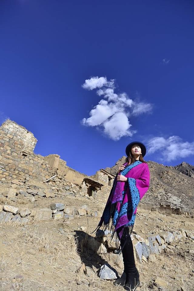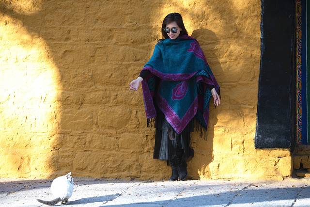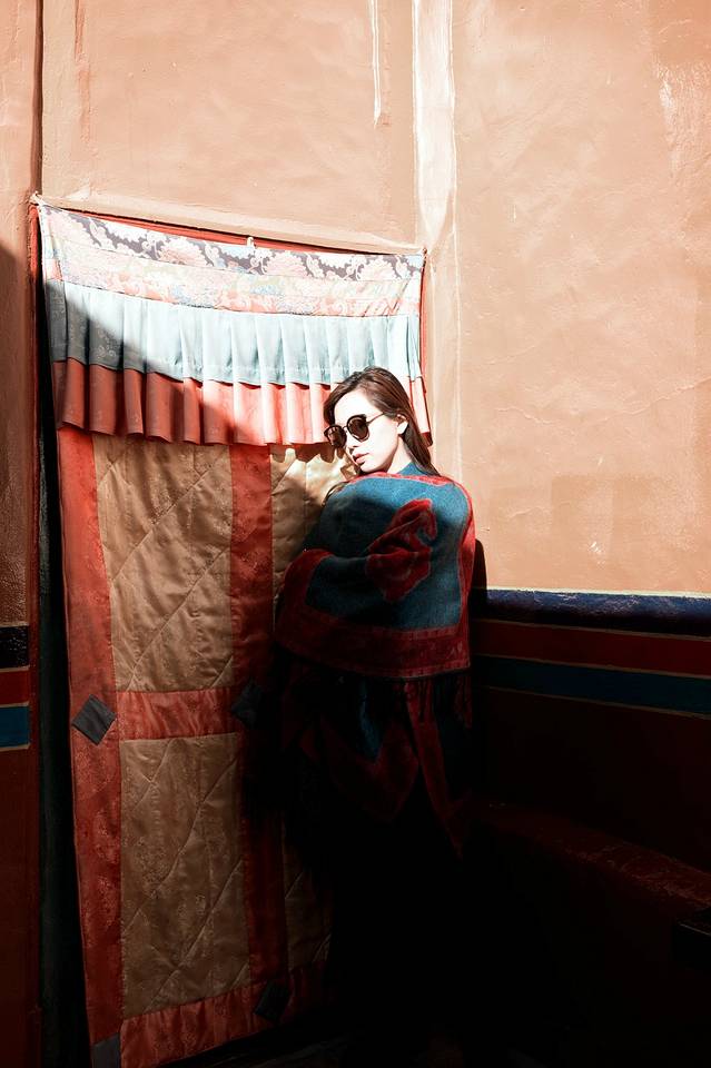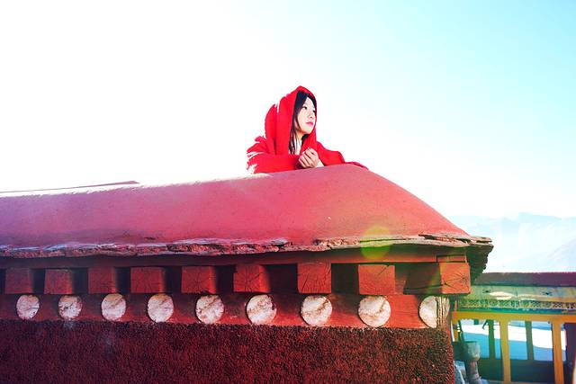 拍摄时,我笑问摄影师该以何种表情,他反问我:”此刻你何种心情?“我不假思索答曰:“敢问仓央嘉措,当年与谁共此?”这位世间最浪漫的情郎,一生向往爱与自由,却仿若终身被困牢笼。记得《西游记》中,女儿国国王与唐僧的这首情歌吗:“悄悄问圣僧,女儿美不美?说什么王权富贵,怕什么戒律清规。 只愿天长地久,与我意中人紧相随。”清雅至极,却也艳丽至极,是不是也很应景?