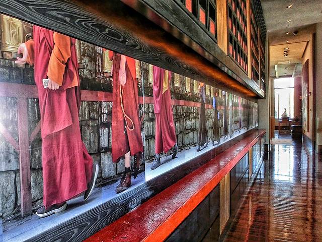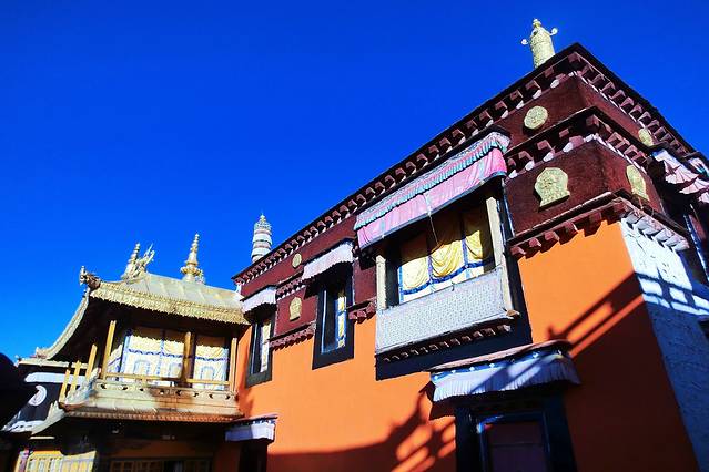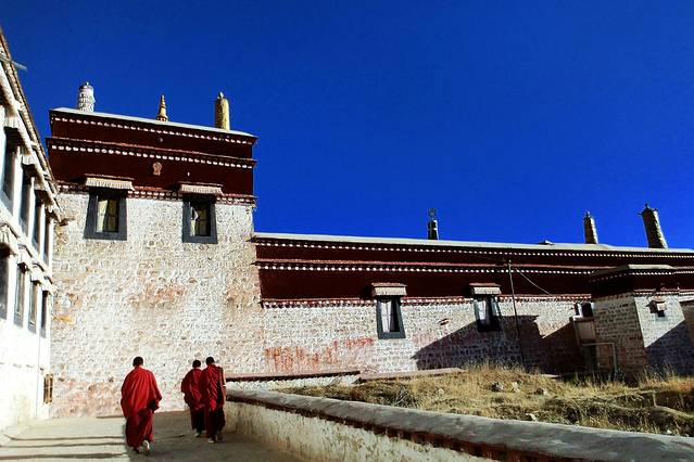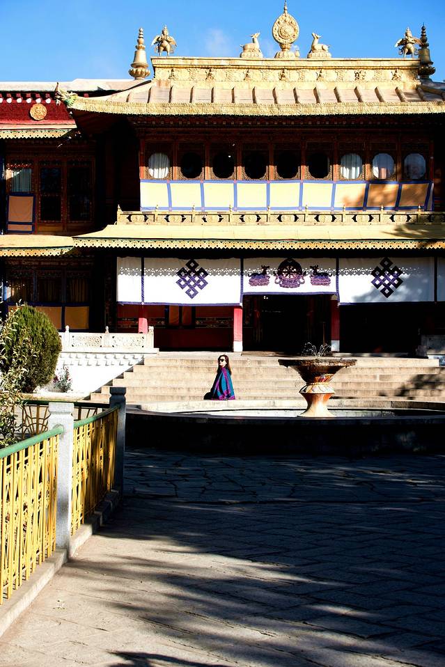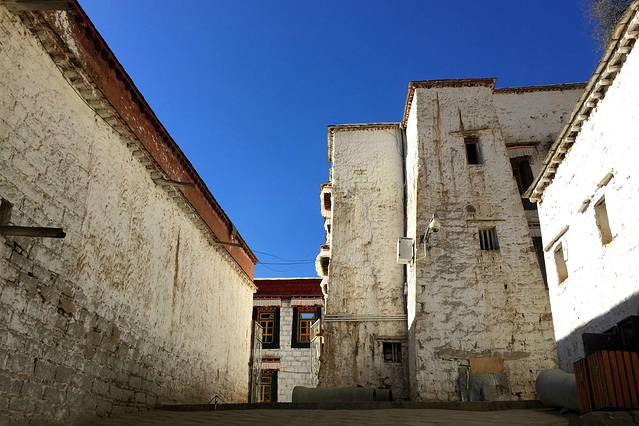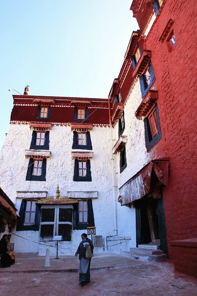 殿内不允许拍照,我们在宫殿之间的天井流连。晒着太阳取暖、不时偷瞄经过的喇嘛,从他们的身影和姿态,用力感受怎么都看不透的神秘西藏。