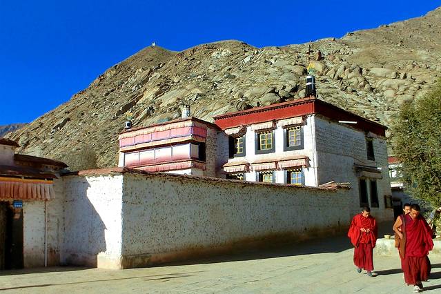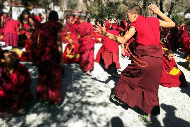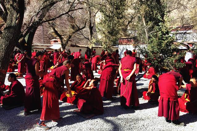 一再述说仓央嘉措,那位三百年前的寂寞情圣,会不会让你觉得遥不可及?如果想稍微靠近今日的喇嘛,建议你一定要去色拉寺。寺院全称为“色拉大乘寺”,关于寺名来源有两种说法:一说该寺在奠基兴建时下了一场大冰雹,冰雹藏语发音为色拉,故该寺建成后取名为“色拉寺”;一说该寺兴建在一片野蔷薇花盛开的地方,野蔷薇藏语发音也为色拉,故取此名。