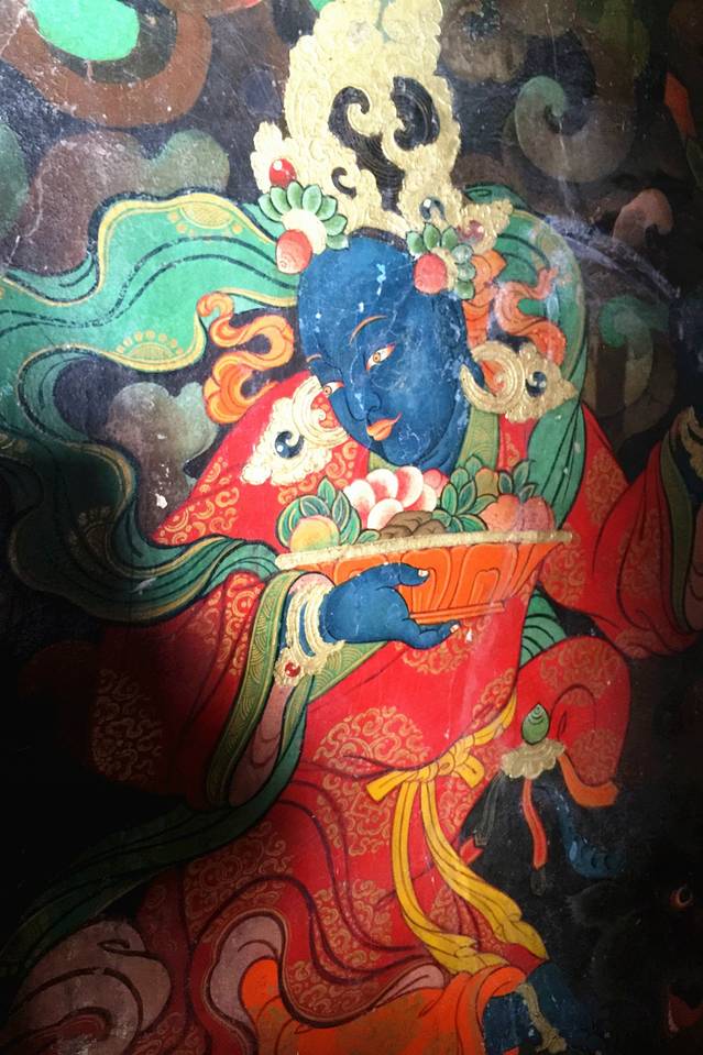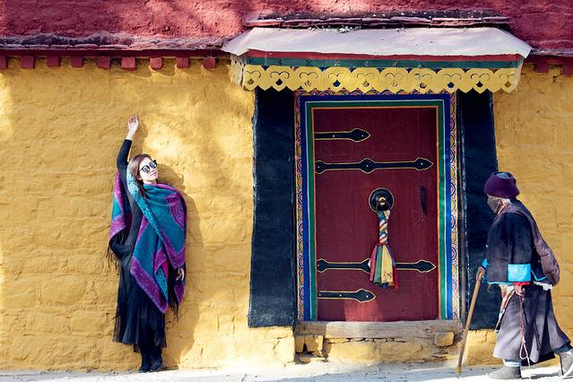 内心还在被传说中各种爱而不得的哀怨缠绵牵扯着,金属老师忽然说:“来,倚着门框,想象一下,马上见情人了会是什么心情?”一瞬间,面上忍不住笑开了花,思绪却还绕在这些曼妙的文字之间:“一个人需要隐藏多少秘密,才能巧妙地度过一生? 这佛光闪闪的高原, 三步两步便是天堂;却仍有那么多人,因心事过重而走不动。”