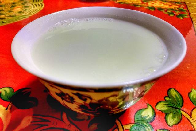德吉为我们端上温热的新鲜牛奶,一再强调这儿的牦牛只吃最干净的草,他们的牛奶是最纯粹美味的;再递上酥脆的麻花,告诉我们就着牛奶吃可以暖身子……不知是不是因为真的冷了还是饿了,觉得真香甜。