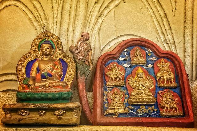 该石像迄今已有千年历史,格桑罗布的先辈以此巨石为墙,建造了房屋。此后维巴村发生多次洪水地震,但格桑罗布家中从未受到侵害。由此,天然莲花生石像声名大振,远近佛教信徒纷纷前来朝拜。好客热情的德吉,唯一拒绝我们的便是对这块石像的拍摄,因此无缘在文中为各位分享,只能发发其它佛像。