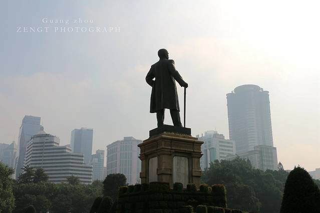 中山纪念堂前孙中山铜像巍然屹立,民国的沧桑变迁再次浮现。