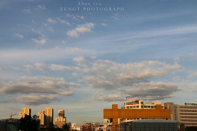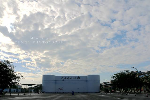 茂名滨海公园。粉刷的壁画墙很有特色。天上成片成片的云朵在阳光的透射下,轮廓非常明显。