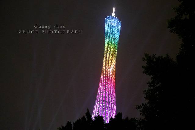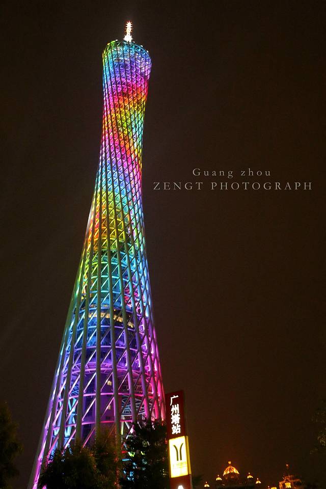 夜幕之下,五光十色的广州塔,光彩夺目。