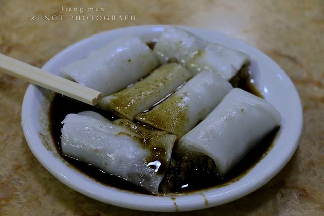 银记肠粉,白如玉,入口很滑很软,酱汁顺着粉皮渗入舌尖。