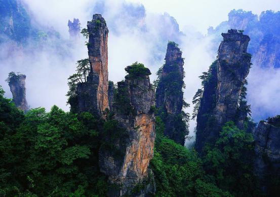 在上午行程中还有两处景点令笔者望而生叹,强烈推荐驴友们去看一看!一个是卡梅隆曾拍摄《阿凡达》取景的“南天一柱”,现在已改名为“哈利路亚山”(PS:什么鬼!?)。旁边的导游介绍说,如果在5、6月的雨季,水汽升腾,南天柱就好似悬在空中的孤岛一样,跟电影里潘多拉星球一样一样的!作为一名宫崎骏的动漫迷,笔者更倾向于将它想象成为天空之城。就为了这个什么“哈利路亚山”,今年雨季,笔者还要来再看一次!