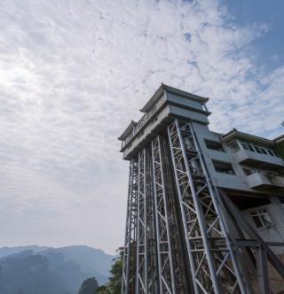 由于我们“起早”的正确决定,此时游客还不算太多。百龙天梯一共有三架同时使用。我们买了百龙天梯的往返票,不用排队,直接通过专属往返通道上电梯,连旁边喂食野猴的表演都没来得及搂上一眼,速度真心赞!值得一提的是,百龙天梯无论是售票员还是引导员都是大美女哦!这看得我们四个单身汉心痒痒,差一点就涌上去搭讪要电话啦!