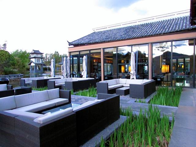 之前的游记里也介绍过了,是一家由著名设计师设计的得过奖项的雅高集团旗下的高端酒店,位于去束河的必经之路上,旁边是滇缅玉石城。整体设计师现代中式风格,设计元素体现的是浓郁的纳西族风情,陈设品的使用都很有讲究:从中式家具到现代时尚的灯饰运用,从小装饰到硬装设计都尽可能体现出了浓郁的文化特色。