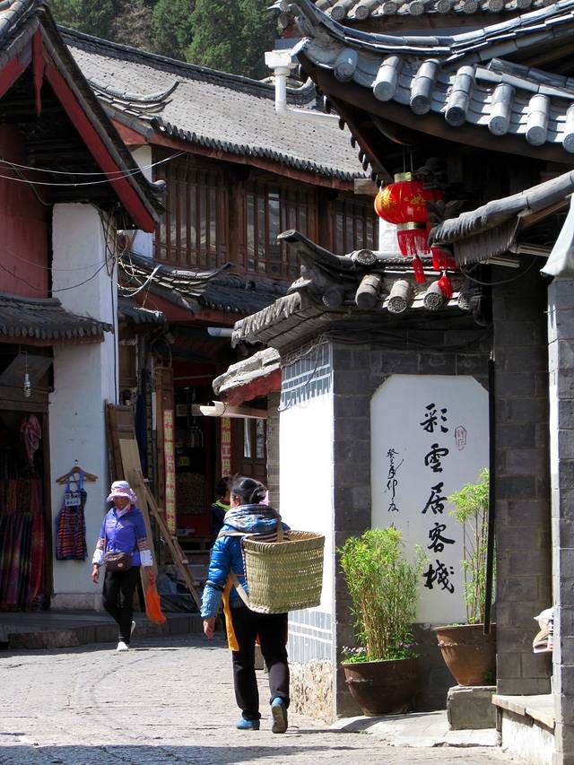 丽江随处可见这些背着篓子的勤劳的纳西妇女