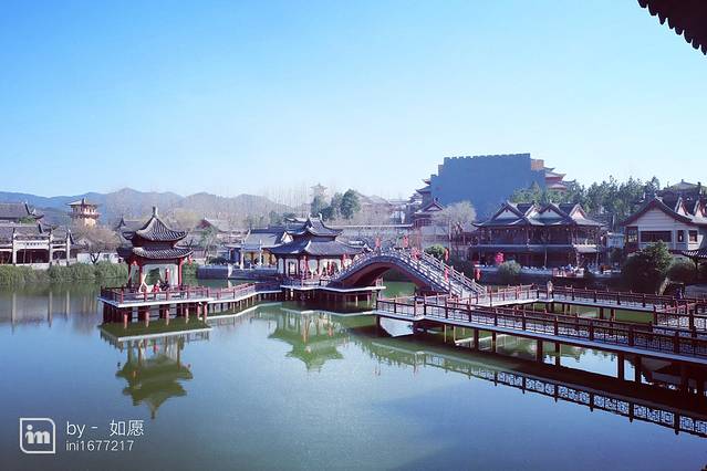 梦幻谷的开放时间是16:00-21:00,地点位于秦王宫下方,逛完秦王宫漫步到这刚刚好,里面游玩的门票都包含了,有个热气球是需要自己给钱的人均120,因为本人跟男友都有点恐高,所以放弃了,只能在地上帮好友拍照😒😒,横店美食街在这里面,晚餐可以在这解决