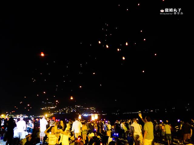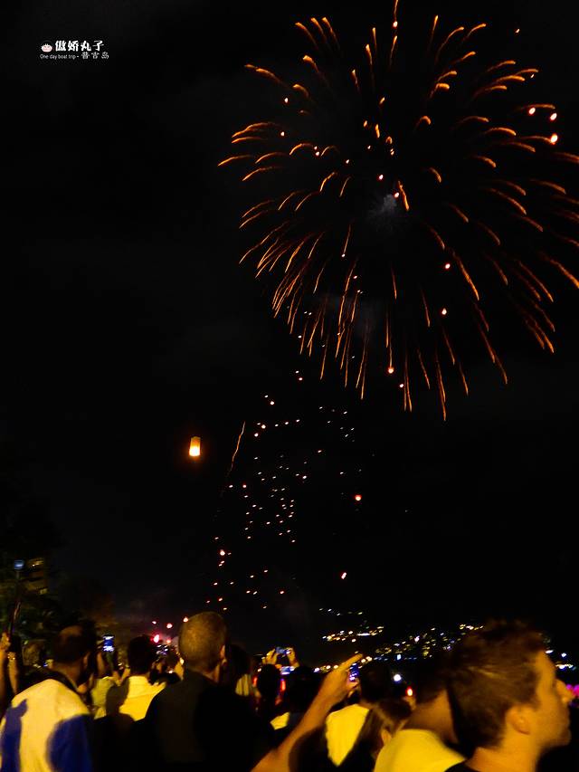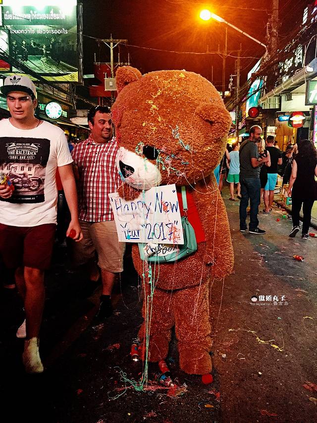 晚上十点的芭东海滩上,已经聚集了很多游客,天上都是孔明灯,还有时不时烟花的闪过,我知道,这一年还有2个小时就要过去了