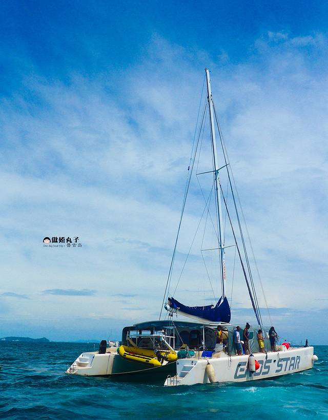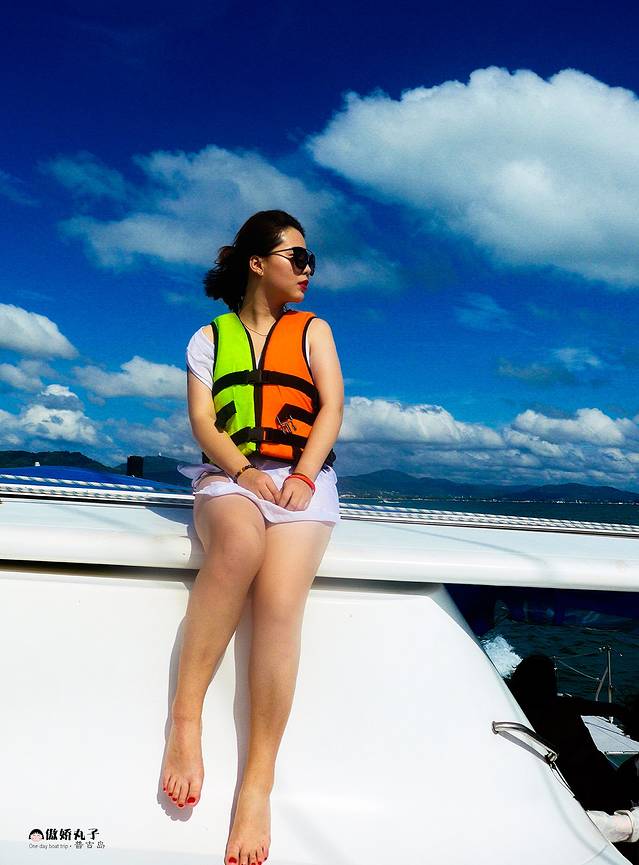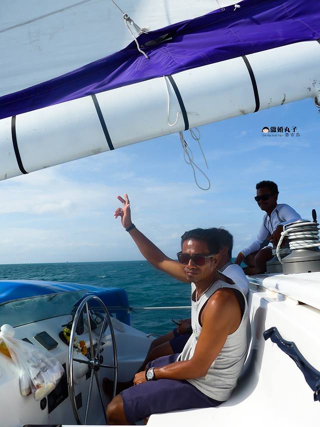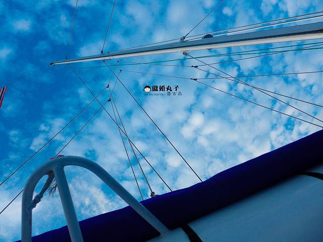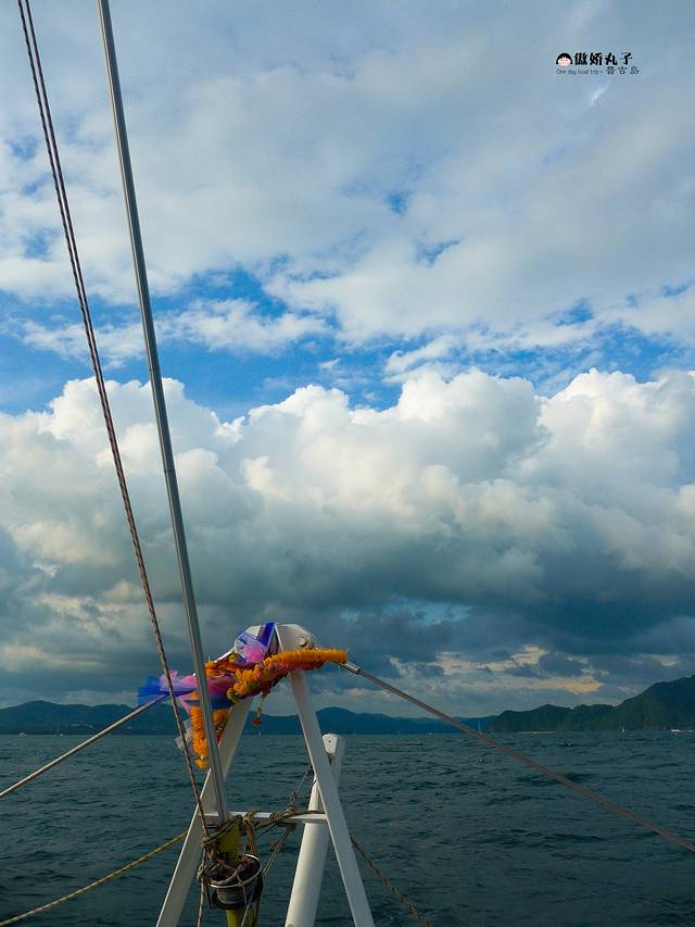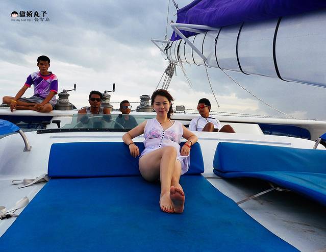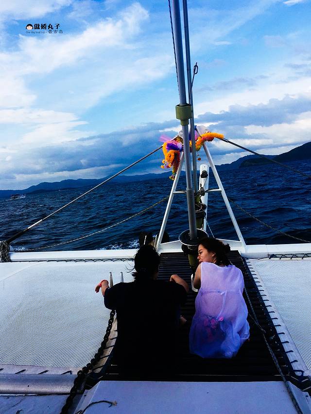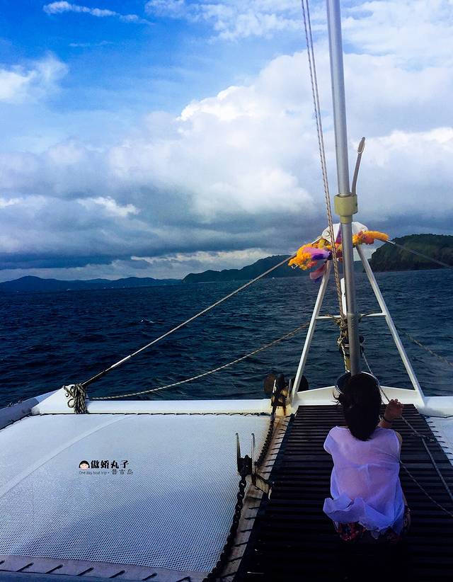 船到皇帝岛大概一个多小时,我就躺在帆船的最高台阶上,离天空最近的地方,晒太阳,格外的舒服,下午时分的太阳并不是很毒辣,还有一阵阵微凉的海风吹着。