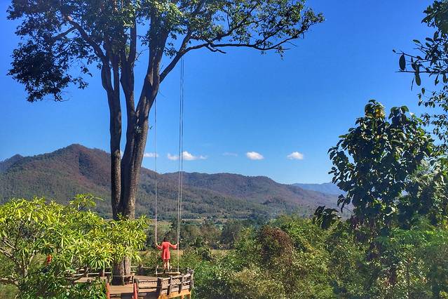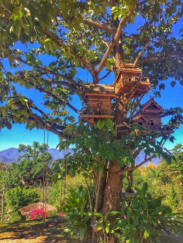 大树秋千和汽车旅馆是拜县的地标,在coffe in love的旁边,在mari pai酒店里面,要穿过咖啡厅往里面走就看到了,大树秋千悬挂于一颗参天大树之上,从远处取景让人有一种进入云端的错觉,这个“秋千”可以我去拜县的最大理由之一呢!