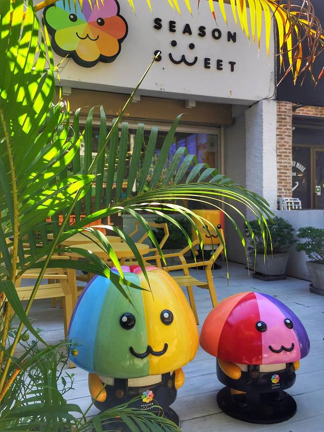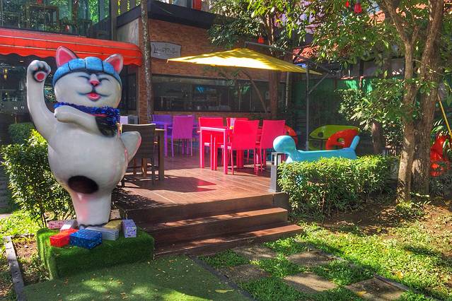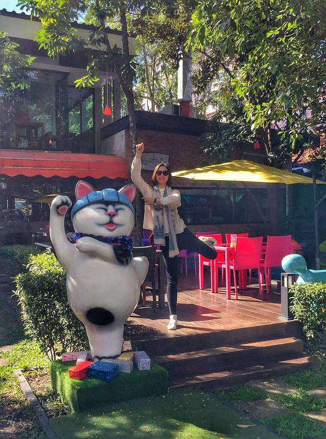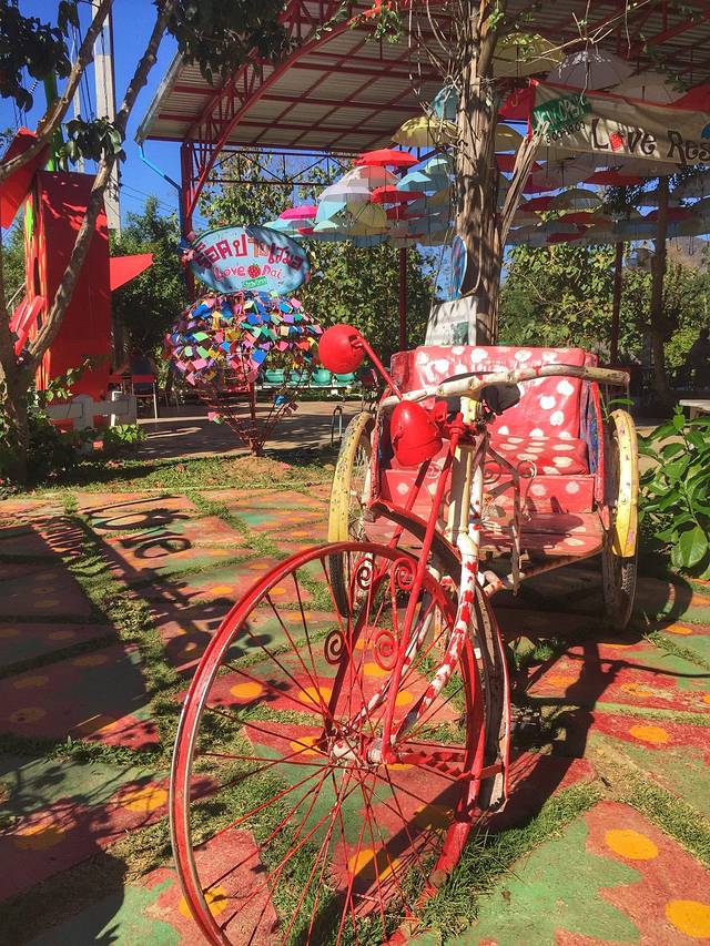 其实清迈被炒得很热的网红店并不多,每个店家都想尽办法,花心思在店的门面装修上,有些靠小清新,有些靠店内的标志性建筑,而这家iBerry能在清迈红透半天,一是因为这是泰国搞笑艺人Nose开得连锁冰淇淋店,二是因为门口枚红色的大狗,实在引人瞩目!所以几乎所有去到清迈的,都会在这家店驻足,或是拍照,或是点杯饮品在里面坐会儿。