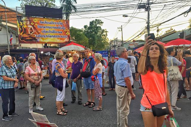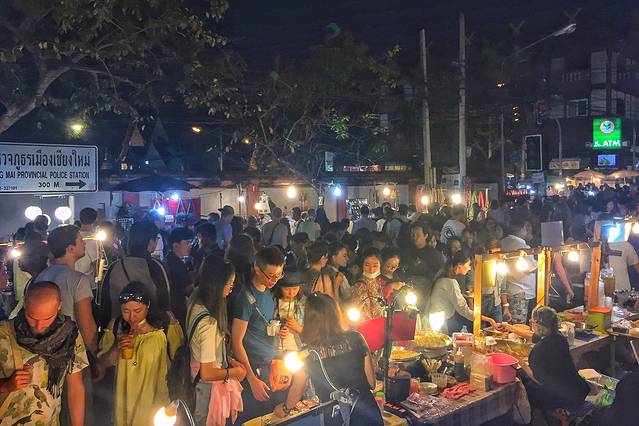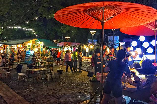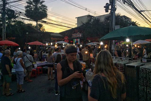 就这样静静发呆到下午18:00左右,出发就感受一下清迈周日集市。