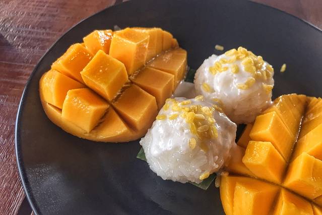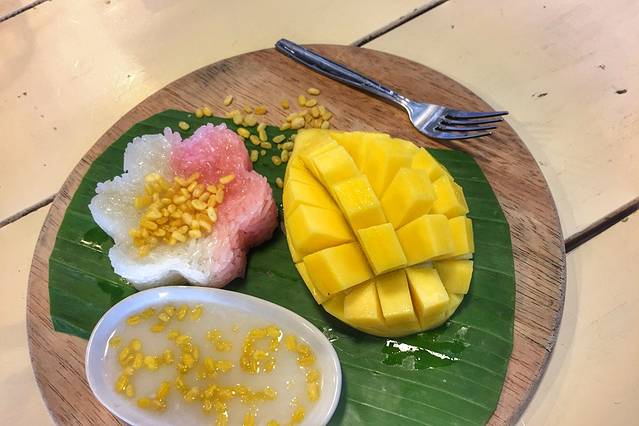 泰北的食物不同于我们印象里的东南亚菜,各种咖喱,其实泰北的食物是以酸辣为主,青瓜大虾色拉直接辣的我喝冰水,冬阴功汤真是酸得我溃疡好痛,最后最喜欢的菜大概就是作为甜品的芒果糯米饭和主食炒裸粉了吧,也是服了自己了的口味了,哈哈哈哈!