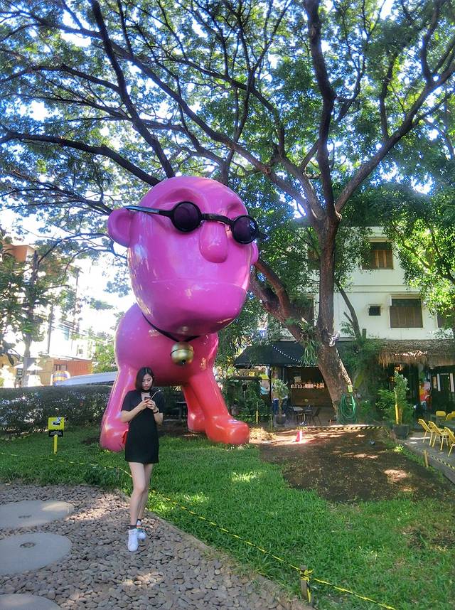我呢,大概就是属于拍照走人的类型,因为我对里面的饮品实在没有太大的兴趣,玫红色的大狗真的很吸睛,让人忍不住想和它来个合影,哈哈哈哈!