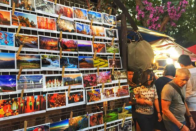 然后就开始体验周日集市,很多人说来清迈必须感受过清迈集市才算没有白来,昂~其实我觉得集市上很多卖的,淘宝也有~哈哈哈哈~只是图一个异国他乡的氛围,在集市上没有买什么,稍微吃了点小吃,然后买了一些明信片,买自己十分喜欢买的明信片,付款的时候和老板聊起来,他说这些照片都是他镜头中的泰国,真的太美了!