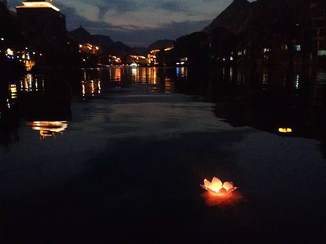 那只莲花灯是我在地摊上一个小妹妹那里买的,莲花灯是小妹妹手工制作的。看着飘在水中的灯,我觉得这座城美好极了!
