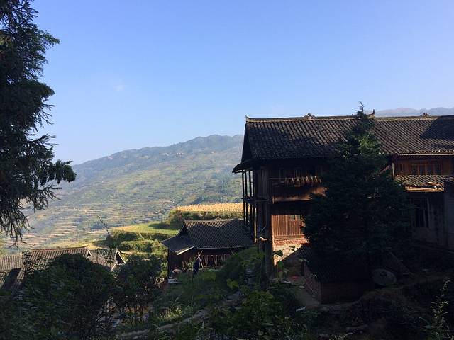清晨的空气非常清新.虽然冷.进去堂安的山路很陡峭.高而险.风景一览无为.里面的建筑让人叹为观止.全是木制房屋.依山就势.悬空吊脚.看着危险却牢固无比.