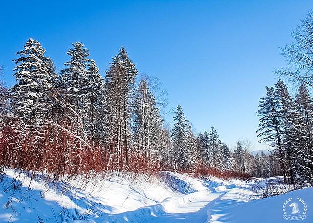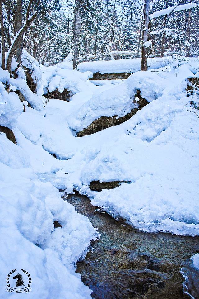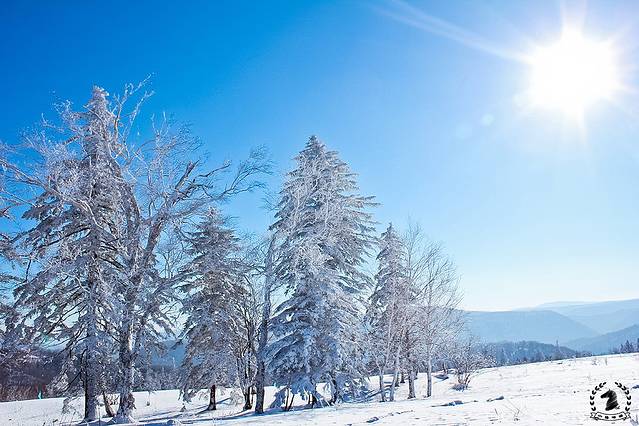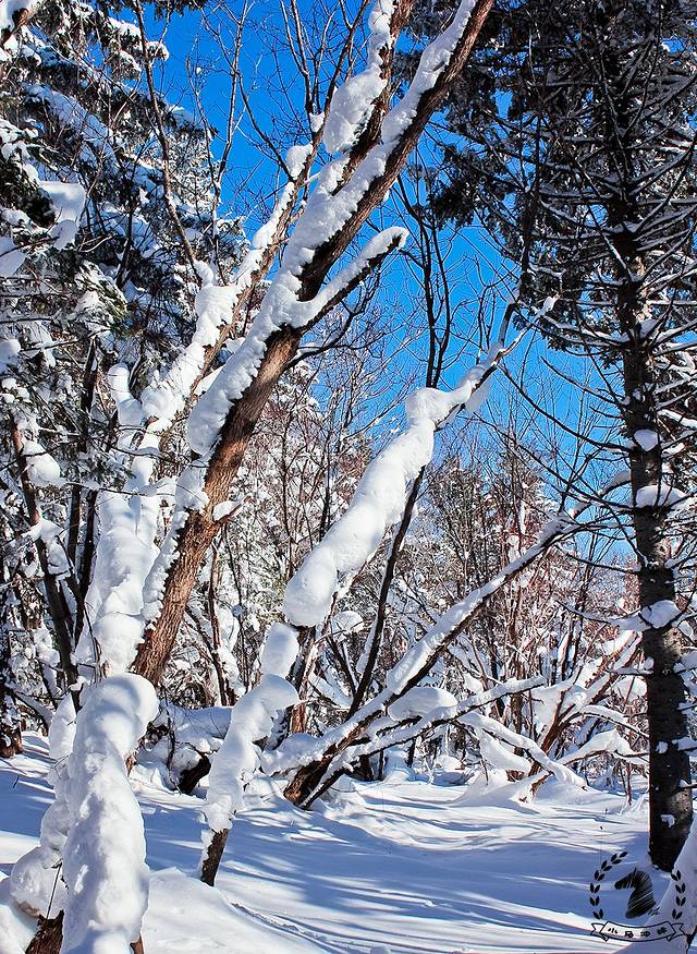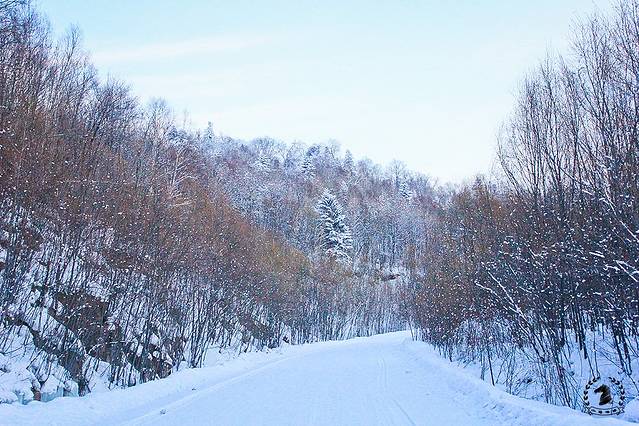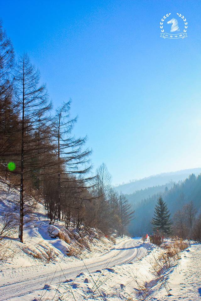 进山的前段,路面比较平缓,视线比较开阔,看着周围的山坡都被皑皑白雪覆盖,心情一片大好。