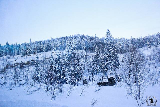 从哈站出发,乘坐大巴约6个小时,便来到的雪乡境内,路上已是积雪漫漫,这是考验司机技术的地方。