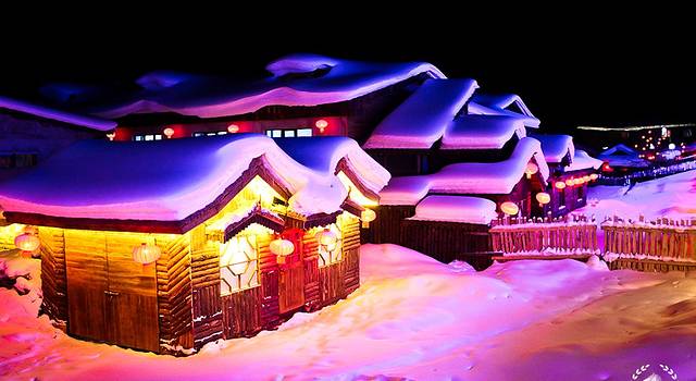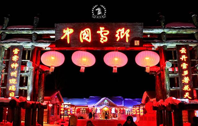在这里,大红灯笼高高挂,映衬着皑皑白雪,幻化无穷。